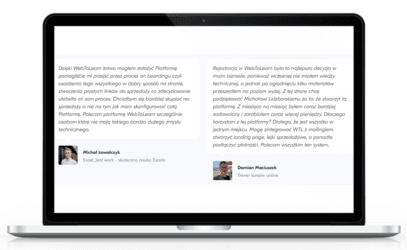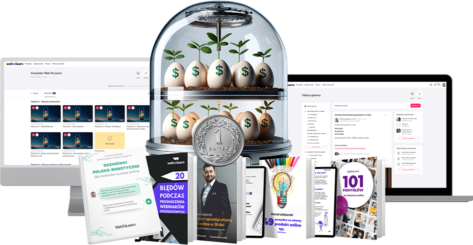 Inkubator wraz z przestrzenią dla społeczności oraz wszystkimi zasobami zlokalizowany jest na wygodnej, zewnętrznej platformie szkoleniowej Web To Learn, do której otrzymasz dostęp tuż po dołączeniu do programu.