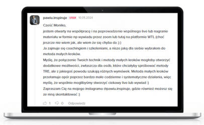 Czerp z motywującej siły społeczności, znajdując miejsce zarówno na poważne biznesowe rozmowy, jak i luźną wymianę zdań. Przekonaj się, że to właśnie wspólnota twórców jest pierwiastkiem, którego do tej pory brakowało na Twojej biznesowej ścieżce.